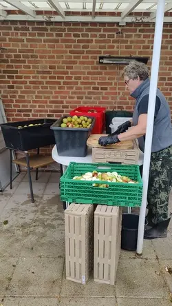 Noget drikkes frisk, meget fryses i poser og resten gæres til Cider.